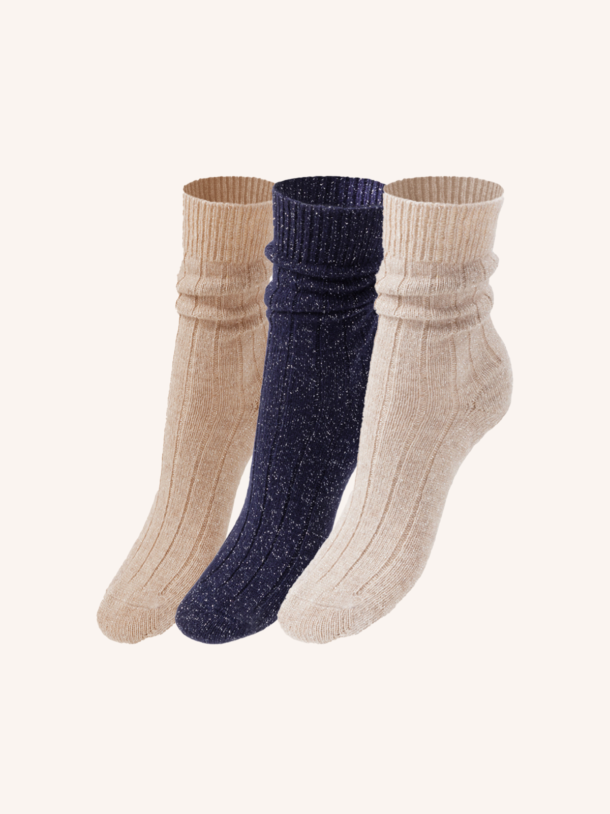 Calza Corta in Lana Cashmere e Lurex per Donna | Tinta Unita | Confezione da 3 Paia | Cashlux D