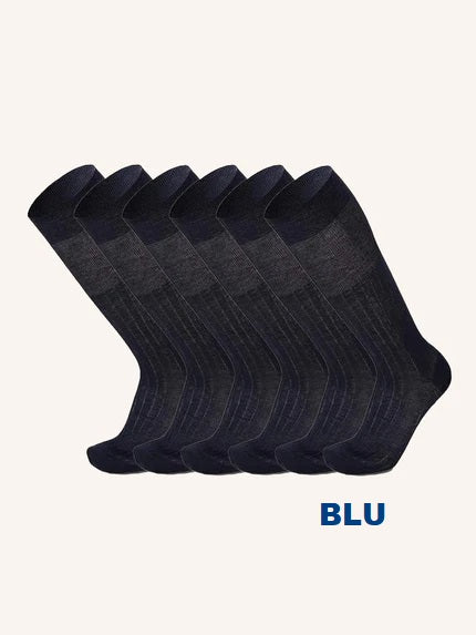 Calza Lunga a Costa in Filo di Scozia per Uomo | Tinta Unita | Confezione da 6 Paia | Achille L