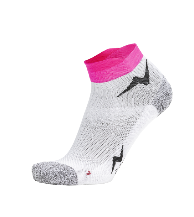 Infine, le abbiamo pensate ferme, adatte ai tuoi movimenti: sono sagomate per piede sinistro e piede destro, hanno una fascia elastica che le stabilizza e il polsino elastico in piquet, un tessuto morbido e fresco.